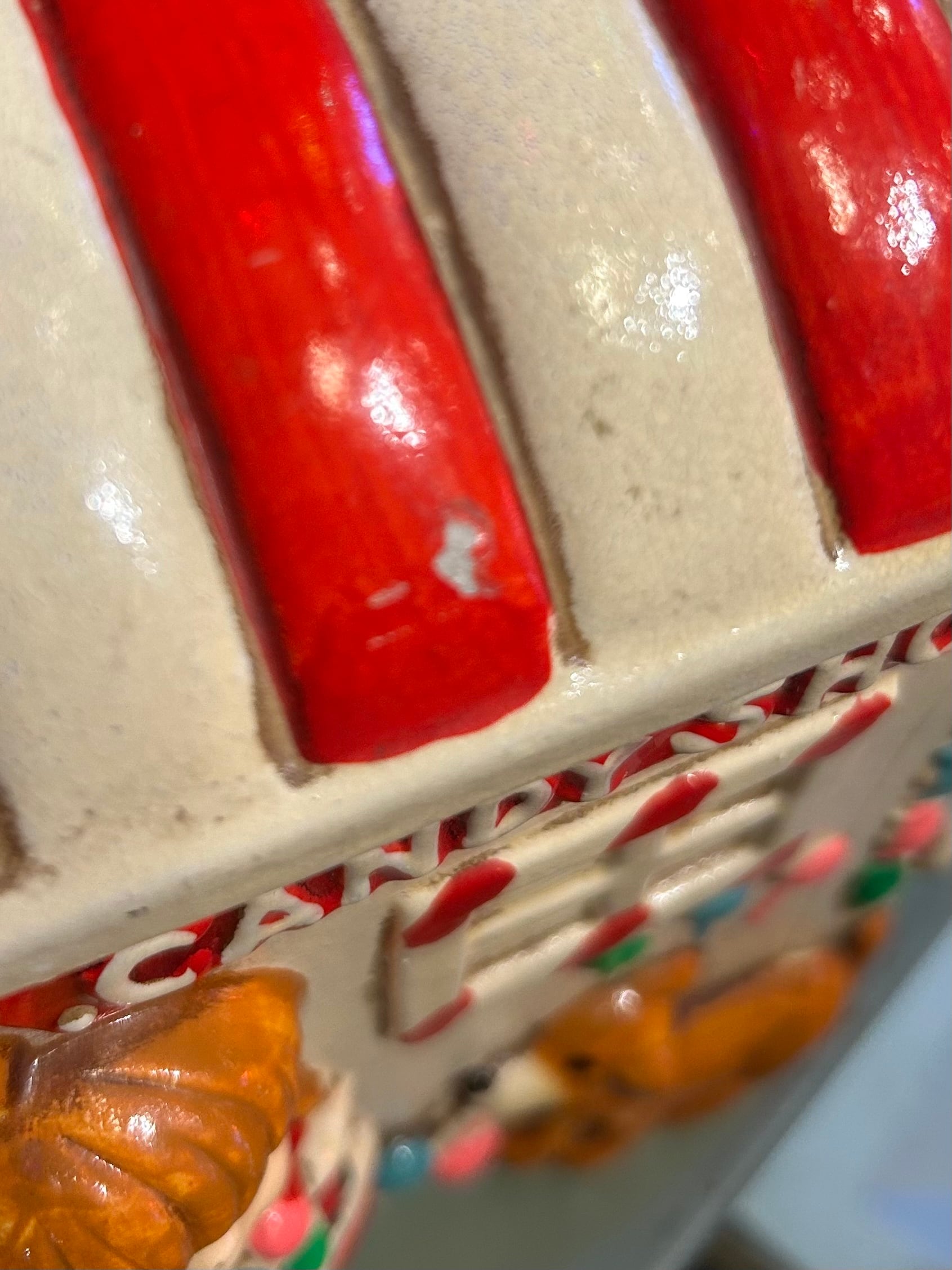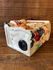 立体に描かれたセラミック製の貯金箱です。